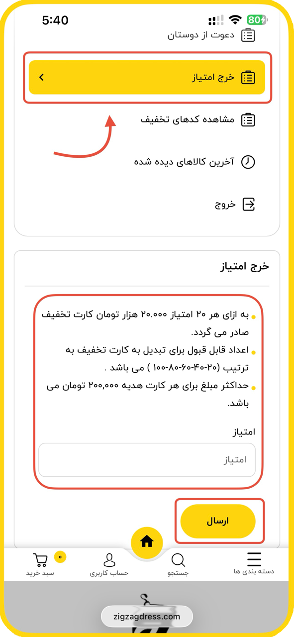 2- حالا از بین گزینه ها خرج امتیاز رو بزنید تا وارد صفحه استفاده از امتیازاتتون بشید .
