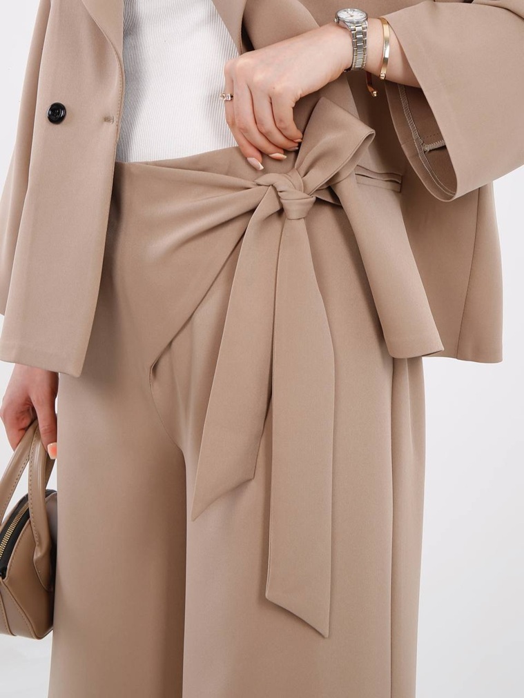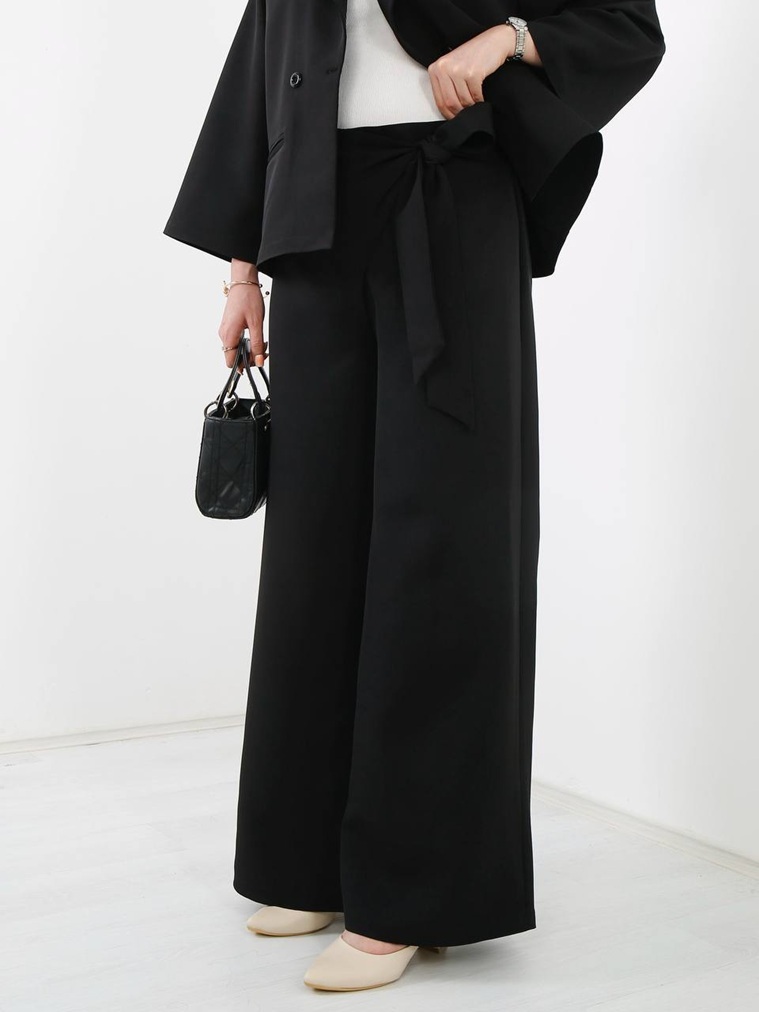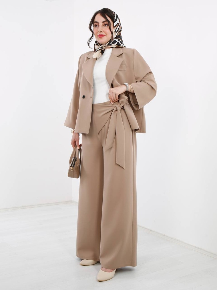 پشت کمر شلوار کش دارد و بغل کمر زیپ دارد و کمر کار با بند پاپیون از بغل کمر قابل تنظیم میباشد .